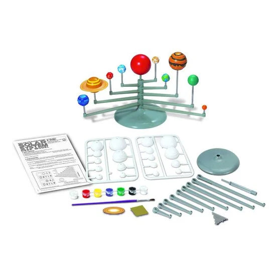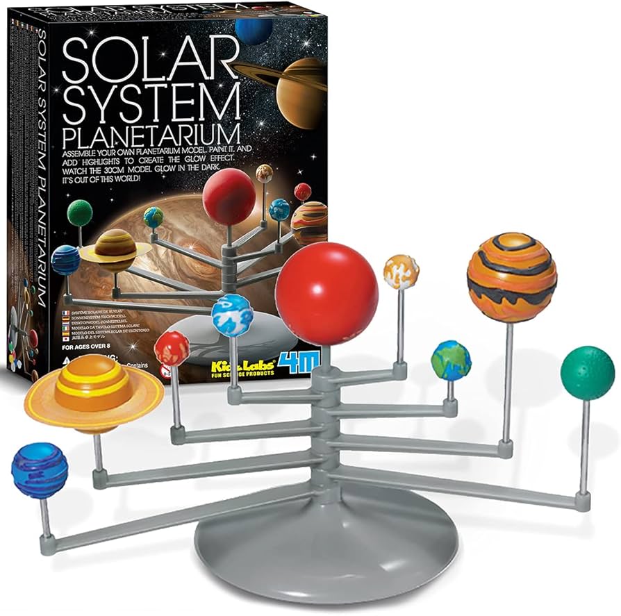 • Includes planetarium model, a brush, paints and glow paint, a stand with rotating arms, nine steel bars, sandpaper, Saturn ring template and instructions