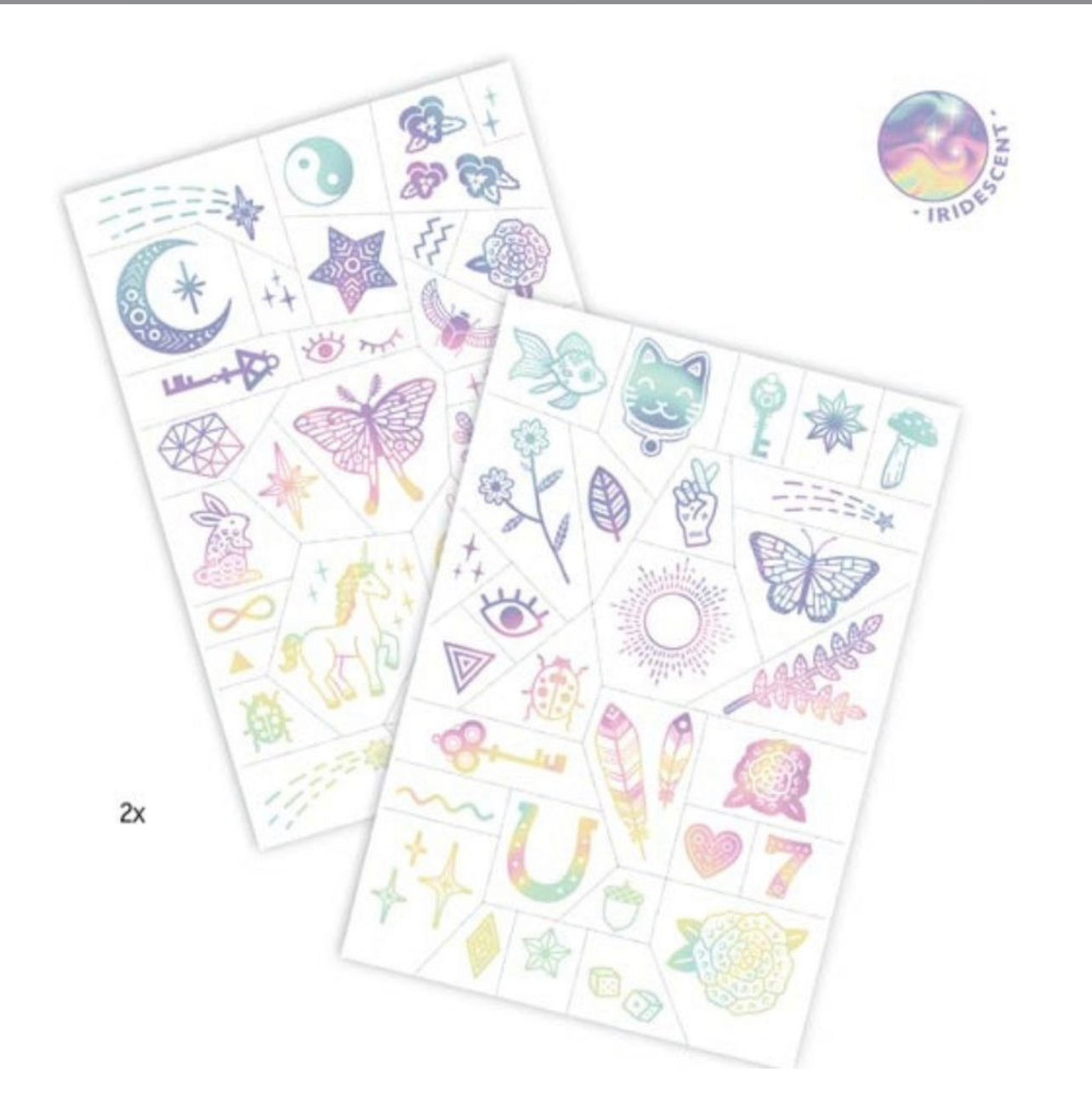 A collection of tattoos with an iridescent finish. Features pretty and mystical designs.