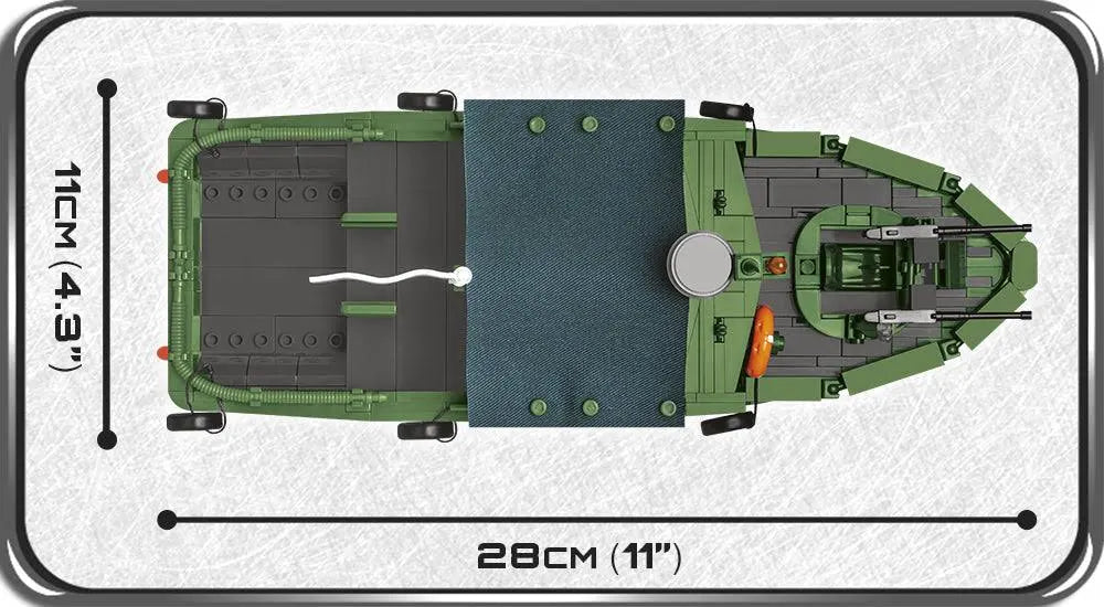 From the set of 615 COBI building blocks you can build the iconic American patrol boat on a sensational 1:35 scale model scale. The model has been faithfully mapped from high-quality blocks, which is complemented by a special fabric, from which the characteristic pbr roof is made! The flat bottom of the boat features discreet wheels that allow the boat to rotate while playing on flat surfaces such as carpet, office or floor. The fun gets even better!