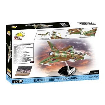 With 576 top-quality COBI construction blocks you can build a multi-purpose EUROFIGHTER TYPHOON FGR4 fighter of your own. The set has been carefully designed in a 1:48 scale and features an opening cockpit, movable ailerons and wheels. The landing gear can be easily detached at any time to display the aircraft on the display stand, which is included in the set. A nameplate is also included. Thanks to the intuitive instructions, the construction is simple and will not cause problems for less advanced builders. The blocks have high-quality prints that do not wear off even during intensive use, as well. The set will also meet the expectations of aviation, military and block enthusiasts. The Eurofighter looks great in your collection, no matter how old you are!