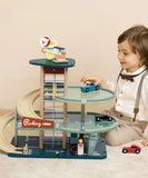 Inspired by the 50s, this garage recalls the golden age of the automobile! With its stylish cars, it offers a car wash, a fuel pump and bloplastic ramps to access the parking lot. The elevator serves all 3 levels and is topped by a platform with a helicopter. The base is equipped with connections to create a track. This toy develops fine motor skills and language. When played with others, it also helps develop social skills. The wood is FSC and the ramps are made of bioplastic.