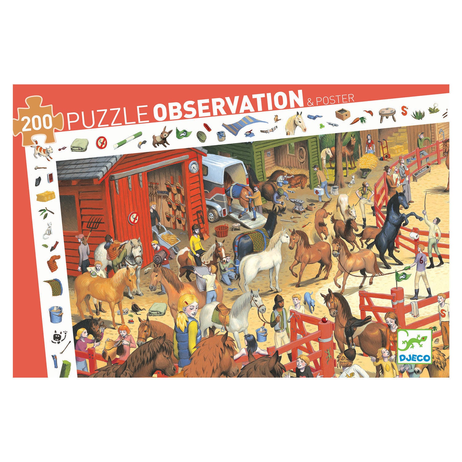 Djeco Puzzle Horse Riding 200 piece kids observation jigsaw of life at the stables - ideal for pony mad children aged 6 to 8 years