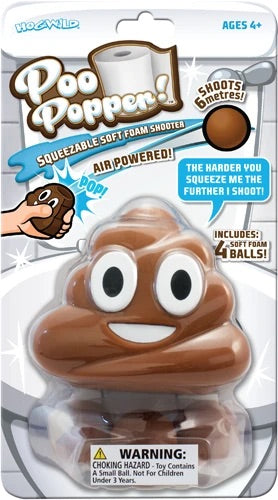 Based on the famed emoji Poo icon, this air powered popper shoots foam balls.