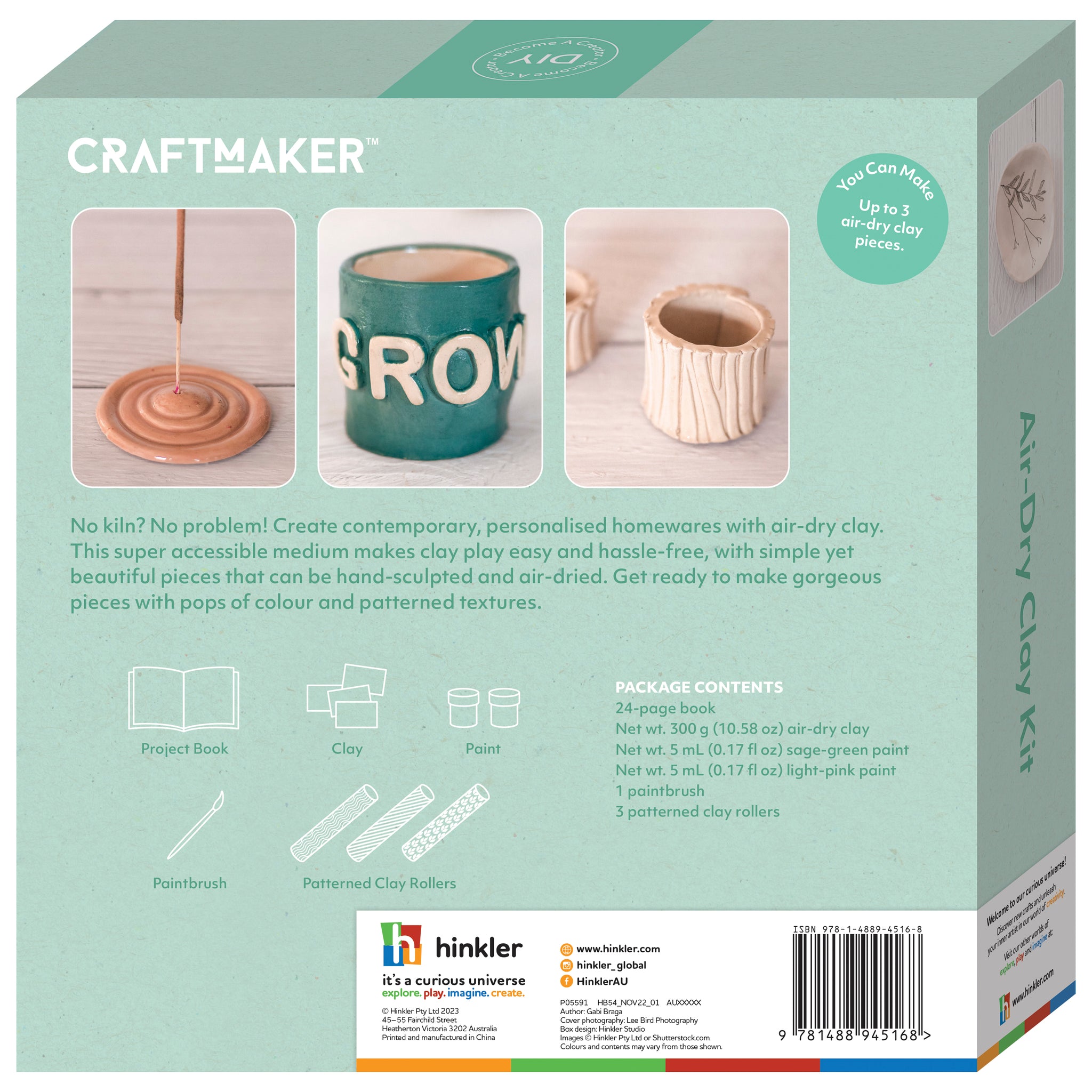 No kiln? No problem! Create contemporary, personalised homewares with the Craft Maker Air-Dry Clay Kit. This super accessible medium makes clay play easy and hassle-free, with simple yet beautiful pieces that can be hand-sculpted and air-dried.