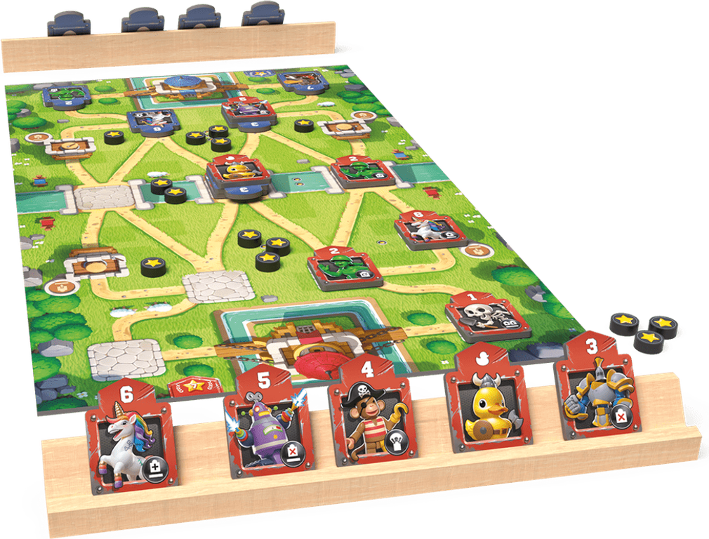 On your turn in Toy Battle, you either draw two toy troops or place a troop on the board and apply its effect. When you place a troop, you can place it on an empty base, a base that you control, a base that the enemy controls with a lower-valued troop than the one you're placing, or the enemy's headquarters; however, in all cases you must place on a location that has a continuous path to your own headquarters through bases that you occupy, that is, that have your troop on top. If you occupy bases that form a continuous path around a region, you claim the medals within this region. (You don't lose these medals if the enemy later occupies one of these bases.)